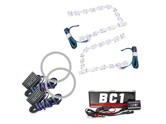 The ColorSHIFT Halo Kit can produce any color including whites from 3000K-15000K with the push of a button. This allows the user to dial-in the exact color rings that they desire. These 3-Chip 5050 SMD rings are BRIGHT, and for some they may be too bright, that is why (for the first time) the user has full control over the ring brightness. ORACLE SMD or "Surface Mount Diode" Halos utilize an advanced type of LED chip that can produce brilliant light output while only consuming a small amount of power. The SMD chips are installed onto a CAD designed 6-layer PCB (Printed Circuit Board) which is very sturdy and will not break if pressured. The PCB can easily be mounted to a headlight housing using the pre-installed 3M adhesive tape backing. The new BC1 ColorSHIFT controller is a robust and rugged Bluetooth option that is easy to install and a low price. Perfect for adding ORACLE ColorSHIFT products to your vehicle, simply connect power and ground then connect your smartphone through the free app to control. The controller features 4 outputs with waterproof connections for easy wiring to your ColorSHIFT lighting products. Through the app you can turn your lights on and off, select from millions of color variations, control patterns, brightness, strobe function, and even control the lights with music