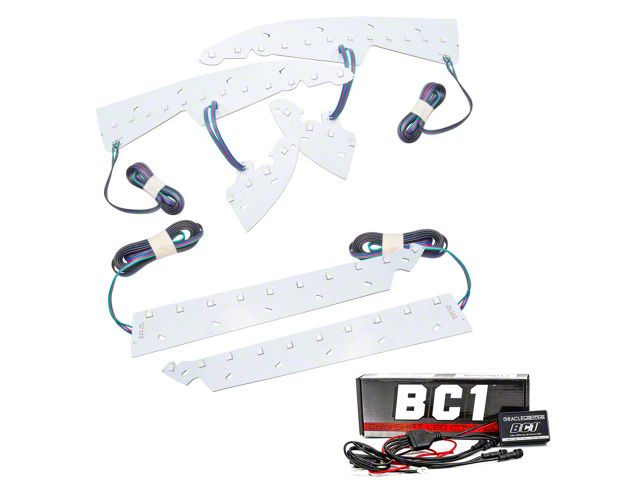 The ColorSHIFT Halo Kit can produce any color including whites from 3000K-15000K with the push of a button. This allows the user to dial-in the exact color rings that they desire. These 3-Chip 5050 SMD rings are BRIGHT, and for some they may be too bright, that is why (for the first time) the user has full control over the ring brightness. ORACLE SMD or "Surface Mount Diode" Halos utilize an advanced type of LED chip that can produce brilliant light output while only consuming a small amount of power. The SMD chips are installed onto a CAD designed 6-layer PCB (Printed Circuit Board) which is very sturdy and will not break if pressured. The PCB can easily be mounted to a headlight housing using the pre-installed 3M adhesive tape backing. The new BC1 ColorSHIFT controller is a robust and rugged Bluetooth option that is easy to install and a low price. Perfect for adding ORACLE ColorSHIFT products to your vehicle, simply connect power and ground then connect your smartphone through the free app to control. The controller features 4 outputs with waterproof connections for easy wiring to your ColorSHIFT lighting products. Through the app you can turn your lights on and off, select from millions of color variations, control patterns, brightness, strobe function, and even control the lights with music