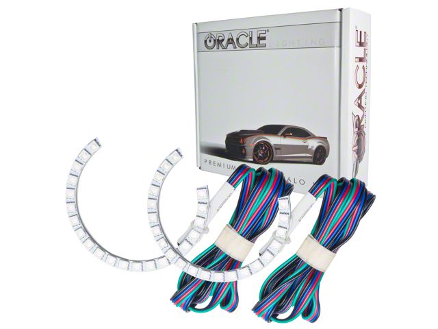The ColorSHIFT Halo Kit can produce any color including whites from 3000K-15000K with the push of a button. This allows the user to dial-in the exact color rings that they desire. These 3-Chip 5050 SMD rings are BRIGHT, and for some they may be too bright, that is why (for the first time) the user has full control over the ring brightness. ORACLE SMD or "Surface Mount Diode" Halos utilize an advanced type of LED chip that can produce brilliant light output while only consuming a small amount of power. The SMD chips are installed onto a CAD designed 6-layer PCB (Printed Circuit Board) which is very sturdy and will not break if pressured. The PCB can easily be mounted to a headlight housing using the pre-installed 3M adhesive tape backing.