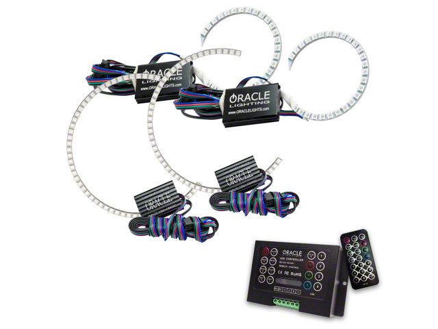 The ColorSHIFT Halo Kit can produce any color including whites from 3000K-15000K with the push of a button. This allows the user to dial-in the exact color rings that they desire. These 3-Chip 5050 SMD rings are BRIGHT, and for some they may be too bright, that is why (for the first time) the user has full control over the ring brightness. ORACLE SMD or "Surface Mount Diode" Halos utilize an advanced type of LED chip that can produce brilliant light output while only consuming a small amount of power. The SMD chips are installed onto a CAD designed 6-layer PCB (Printed Circuit Board) which is very sturdy and will not break if pressured. The PCB can easily be mounted to a headlight housing using the pre-installed 3M adhesive tape backing.