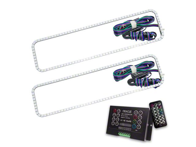 The ColorSHIFT Halo Kit can produce any color including whites from 3000K-15000K with the push of a button. This allows the user to dial-in the exact color rings that they desire. These 3-Chip 5050 SMD rings are BRIGHT, and for some they may be too bright, that is why (for the first time) the user has full control over the ring brightness. ORACLE SMD or "Surface Mount Diode" Halos utilize an advanced type of LED chip that can produce brilliant light output while only consuming a small amount of power. The SMD chips are installed onto a CAD designed 6-layer PCB (Printed Circuit Board) which is very sturdy and will not break if pressured. The PCB can easily be mounted to a headlight housing using the pre-installed 3M adhesive tape backing.