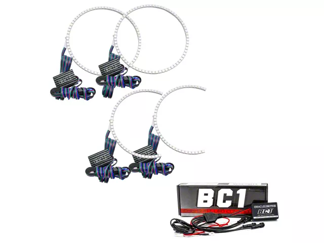 The ColorSHIFT Halo Kit can produce any color including whites from 3000K-15000K with the push of a button. This allows the user to dial-in the exact color rings that they desire. These 3-Chip 5050 SMD rings are BRIGHT, and for some they may be too bright, that is why (for the first time) the user has full control over the ring brightness. ORACLE SMD or "Surface Mount Diode" Halos utilize an advanced type of LED chip that can produce brilliant light output while only consuming a small amount of power. The SMD chips are installed onto a CAD designed 6-layer PCB (Printed Circuit Board) which is very sturdy and will not break if pressured. The PCB can easily be mounted to a headlight housing using the pre-installed 3M adhesive tape backing. The new BC1 ColorSHIFT controller is a robust and rugged Bluetooth option that is easy to install and a low price. Perfect for adding ORACLE ColorSHIFT products to your vehicle, simply connect power and ground then connect your smartphone through the free app to control. The controller features 4 outputs with waterproof connections for easy wiring to your ColorSHIFT lighting products. Through the app you can turn your lights on and off, select from millions of color variations, control patterns, brightness, strobe function, and even control the lights with music