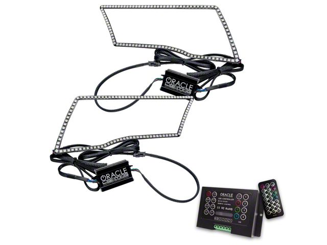 The ColorSHIFT Halo Kit can produce any color including whites from 3000K-15000K with the push of a button. This allows the user to dial-in the exact color rings that they desire. These 3-Chip 5050 SMD rings are BRIGHT, and for some they may be too bright, that is why (for the first time) the user has full control over the ring brightness. ORACLE SMD or "Surface Mount Diode" Halos utilize an advanced type of LED chip that can produce brilliant light output while only consuming a small amount of power. The SMD chips are installed onto a CAD designed 6-layer PCB (Printed Circuit Board) which is very sturdy and will not break if pressured. The PCB can easily be mounted to a headlight housing using the pre-installed 3M adhesive tape backing.
