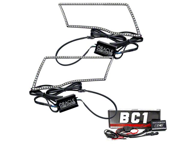 The ColorSHIFT Halo Kit can produce any color including whites from 3000K-15000K with the push of a button. This allows the user to dial-in the exact color rings that they desire. These 3-Chip 5050 SMD rings are BRIGHT, and for some they may be too bright, that is why (for the first time) the user has full control over the ring brightness. ORACLE SMD or "Surface Mount Diode" Halos utilize an advanced type of LED chip that can produce brilliant light output while only consuming a small amount of power. The SMD chips are installed onto a CAD designed 6-layer PCB (Printed Circuit Board) which is very sturdy and will not break if pressured. The PCB can easily be mounted to a headlight housing using the pre-installed 3M adhesive tape backing. The new BC1 ColorSHIFT controller is a robust and rugged Bluetooth option that is easy to install and a low price. Perfect for adding ORACLE ColorSHIFT products to your vehicle, simply connect power and ground then connect your smartphone through the free app to control. The controller features 4 outputs with waterproof connections for easy wiring to your ColorSHIFT lighting products. Through the app you can turn your lights on and off, select from millions of color variations, control patterns, brightness, strobe function, and even control the lights with music
