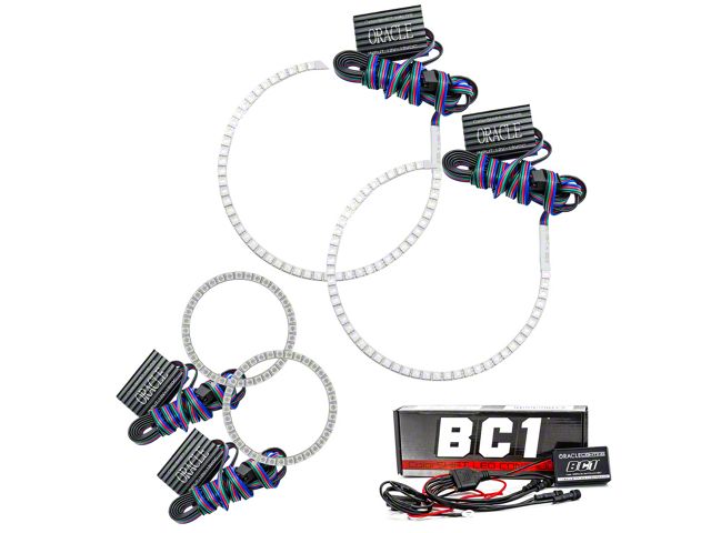 The ColorSHIFT Halo Kit can produce any color including whites from 3000K-15000K with the push of a button. This allows the user to dial-in the exact color rings that they desire. These 3-Chip 5050 SMD rings are BRIGHT, and for some they may be too bright, that is why (for the first time) the user has full control over the ring brightness. ORACLE SMD or "Surface Mount Diode" Halos utilize an advanced type of LED chip that can produce brilliant light output while only consuming a small amount of power. The SMD chips are installed onto a CAD designed 6-layer PCB (Printed Circuit Board) which is very sturdy and will not break if pressured. The PCB can easily be mounted to a headlight housing using the pre-installed 3M adhesive tape backing. The new BC1 ColorSHIFT controller is a robust and rugged Bluetooth option that is easy to install and a low price. Perfect for adding ORACLE ColorSHIFT products to your vehicle, simply connect power and ground then connect your smartphone through the free app to control. The controller features 4 outputs with waterproof connections for easy wiring to your ColorSHIFT lighting products. Through the app you can turn your lights on and off, select from millions of color variations, control patterns, brightness, strobe function, and even control the lights with music