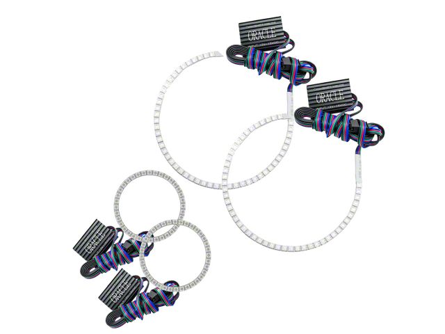 The ColorSHIFT Halo Kit can produce any color including whites from 3000K-15000K with the push of a button. This allows the user to dial-in the exact color rings that they desire. These 3-Chip 5050 SMD rings are BRIGHT, and for some they may be too bright, that is why (for the first time) the user has full control over the ring brightness. ORACLE SMD or "Surface Mount Diode" Halos utilize an advanced type of LED chip that can produce brilliant light output while only consuming a small amount of power. The SMD chips are installed onto a CAD designed 6-layer PCB (Printed Circuit Board) which is very sturdy and will not break if pressured. The PCB can easily be mounted to a headlight housing using the pre-installed 3M adhesive tape backing.