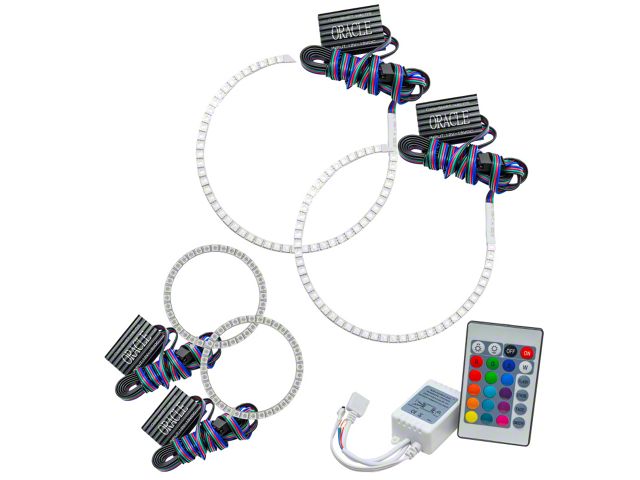 The ColorSHIFT Halo Kit can produce any color including whites from 3000K-15000K with the push of a button. This allows the user to dial-in the exact color rings that they desire. These 3-Chip 5050 SMD rings are BRIGHT, and for some they may be too bright, that is why (for the first time) the user has full control over the ring brightness. ORACLE SMD or "Surface Mount Diode" Halos utilize an advanced type of LED chip that can produce brilliant light output while only consuming a small amount of power. The SMD chips are installed onto a CAD designed 6-layer PCB (Printed Circuit Board) which is very sturdy and will not break if pressured. The PCB can easily be mounted to a headlight housing using the pre-installed 3M adhesive tape backing.