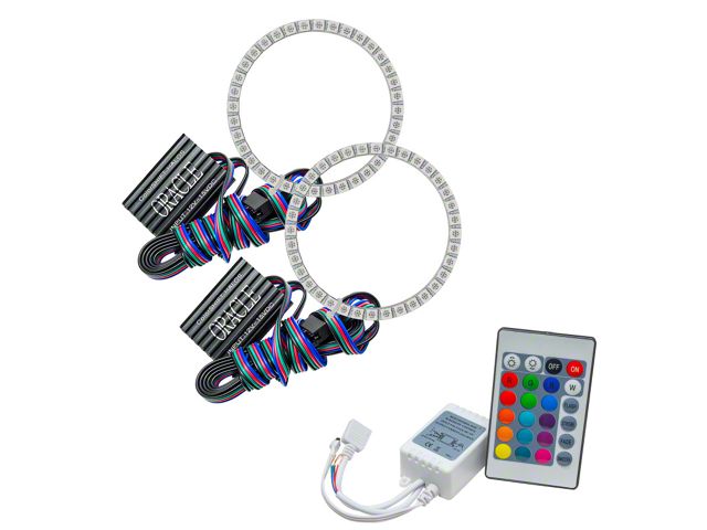 The ColorSHIFT Halo Kit can produce any color including whites from 3000K-15000K with the push of a button. This allows the user to dial-in the exact color rings that they desire. These 3-Chip 5050 SMD rings are BRIGHT, and for some they may be too bright, that is why (for the first time) the user has full control over the ring brightness. ORACLE SMD or "Surface Mount Diode" Halos utilize an advanced type of LED chip that can produce brilliant light output while only consuming a small amount of power. The SMD chips are installed onto a CAD designed 6-layer PCB (Printed Circuit Board) which is very sturdy and will not break if pressured. The PCB can easily be mounted to a headlight housing using the pre-installed 3M adhesive tape backing.