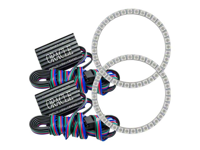 The ColorSHIFT Halo Kit can produce any color including whites from 3000K-15000K with the push of a button. This allows the user to dial-in the exact color rings that they desire. These 3-Chip 5050 SMD rings are BRIGHT, and for some they may be too bright, that is why (for the first time) the user has full control over the ring brightness. ORACLE SMD or "Surface Mount Diode" Halos utilize an advanced type of LED chip that can produce brilliant light output while only consuming a small amount of power. The SMD chips are installed onto a CAD designed 6-layer PCB (Printed Circuit Board) which is very sturdy and will not break if pressured. The PCB can easily be mounted to a headlight housing using the pre-installed 3M adhesive tape backing.