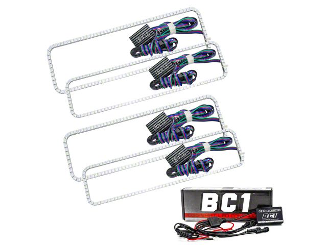 The ColorSHIFT Halo Kit can produce any color including whites from 3000K-15000K with the push of a button. This allows the user to dial-in the exact color rings that they desire. These 3-Chip 5050 SMD rings are BRIGHT, and for some they may be too bright, that is why (for the first time) the user has full control over the ring brightness. ORACLE SMD or "Surface Mount Diode" Halos utilize an advanced type of LED chip that can produce brilliant light output while only consuming a small amount of power. The SMD chips are installed onto a CAD designed 6-layer PCB (Printed Circuit Board) which is very sturdy and will not break if pressured. The PCB can easily be mounted to a headlight housing using the pre-installed 3M adhesive tape backing. The new BC1 ColorSHIFT controller is a robust and rugged Bluetooth option that is easy to install and a low price. Perfect for adding ORACLE ColorSHIFT products to your vehicle, simply connect power and ground then connect your smartphone through the free app to control. The controller features 4 outputs with waterproof connections for easy wiring to your ColorSHIFT lighting products. Through the app you can turn your lights on and off, select from millions of color variations, control patterns, brightness, strobe function, and even control the lights with music