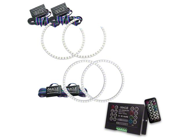 The ColorSHIFT Halo Kit can produce any color including whites from 3000K-15000K with the push of a button. This allows the user to dial-in the exact color rings that they desire. These 3-Chip 5050 SMD rings are BRIGHT, and for some they may be too bright, that is why (for the first time) the user has full control over the ring brightness. ORACLE SMD or "Surface Mount Diode" Halos utilize an advanced type of LED chip that can produce brilliant light output while only consuming a small amount of power. The SMD chips are installed onto a CAD designed 6-layer PCB (Printed Circuit Board) which is very sturdy and will not break if pressured. The PCB can easily be mounted to a headlight housing using the pre-installed 3M adhesive tape backing.