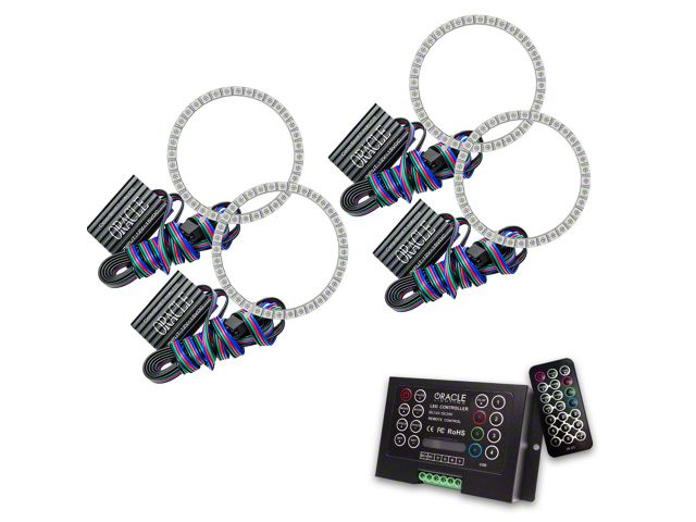 The ColorSHIFT Halo Kit can produce any color including whites from 3000K-15000K with the push of a button. This allows the user to dial-in the exact color rings that they desire. These 3-Chip 5050 SMD rings are BRIGHT, and for some they may be too bright, that is why (for the first time) the user has full control over the ring brightness. ORACLE SMD or "Surface Mount Diode" Halos utilize an advanced type of LED chip that can produce brilliant light output while only consuming a small amount of power. The SMD chips are installed onto a CAD designed 6-layer PCB (Printed Circuit Board) which is very sturdy and will not break if pressured. The PCB can easily be mounted to a headlight housing using the pre-installed 3M adhesive tape backing.