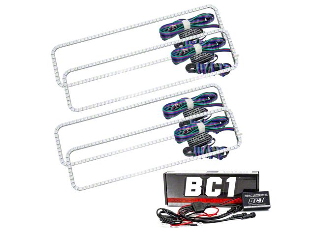 The ColorSHIFT Halo Kit can produce any color including whites from 3000K-15000K with the push of a button. This allows the user to dial-in the exact color rings that they desire. These 3-Chip 5050 SMD rings are BRIGHT, and for some they may be too bright, that is why (for the first time) the user has full control over the ring brightness. ORACLE SMD or "Surface Mount Diode" Halos utilize an advanced type of LED chip that can produce brilliant light output while only consuming a small amount of power. The SMD chips are installed onto a CAD designed 6-layer PCB (Printed Circuit Board) which is very sturdy and will not break if pressured. The PCB can easily be mounted to a headlight housing using the pre-installed 3M adhesive tape backing. The new BC1 ColorSHIFT controller is a robust and rugged Bluetooth option that is easy to install and a low price. Perfect for adding ORACLE ColorSHIFT products to your vehicle, simply connect power and ground then connect your smartphone through the free app to control. The controller features 4 outputs with waterproof connections for easy wiring to your ColorSHIFT lighting products. Through the app you can turn your lights on and off, select from millions of color variations, control patterns, brightness, strobe function, and even control the lights with music