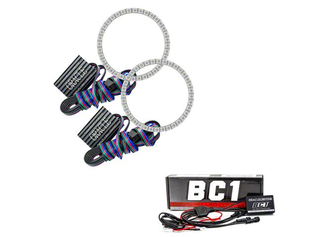 The ColorSHIFT Halo Kit can produce any color including whites from 3000K-15000K with the push of a button. This allows the user to dial-in the exact color rings that they desire. These 3-Chip 5050 SMD rings are BRIGHT, and for some they may be too bright, that is why (for the first time) the user has full control over the ring brightness. ORACLE SMD or "Surface Mount Diode" Halos utilize an advanced type of LED chip that can produce brilliant light output while only consuming a small amount of power. The SMD chips are installed onto a CAD designed 6-layer PCB (Printed Circuit Board) which is very sturdy and will not break if pressured. The PCB can easily be mounted to a headlight housing using the pre-installed 3M adhesive tape backing. The new BC1 ColorSHIFT controller is a robust and rugged Bluetooth option that is easy to install and a low price. Perfect for adding ORACLE ColorSHIFT products to your vehicle, simply connect power and ground then connect your smartphone through the free app to control. The controller features 4 outputs with waterproof connections for easy wiring to your ColorSHIFT lighting products. Through the app you can turn your lights on and off, select from millions of color variations, control patterns, brightness, strobe function, and even control the lights with music