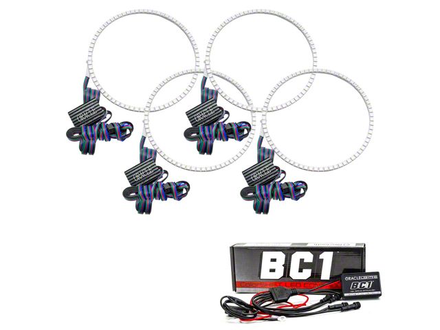 The ColorSHIFT Halo Kit can produce any color including whites from 3000K-15000K with the push of a button. This allows the user to dial-in the exact color rings that they desire. These 3-Chip 5050 SMD rings are BRIGHT, and for some they may be too bright, that is why (for the first time) the user has full control over the ring brightness. ORACLE SMD or "Surface Mount Diode" Halos utilize an advanced type of LED chip that can produce brilliant light output while only consuming a small amount of power. The SMD chips are installed onto a CAD designed 6-layer PCB (Printed Circuit Board) which is very sturdy and will not break if pressured. The PCB can easily be mounted to a headlight housing using the pre-installed 3M adhesive tape backing. The new BC1 ColorSHIFT controller is a robust and rugged Bluetooth option that is easy to install and a low price. Perfect for adding ORACLE ColorSHIFT products to your vehicle, simply connect power and ground then connect your smartphone through the free app to control. The controller features 4 outputs with waterproof connections for easy wiring to your ColorSHIFT lighting products. Through the app you can turn your lights on and off, select from millions of color variations, control patterns, brightness, strobe function, and even control the lights with music