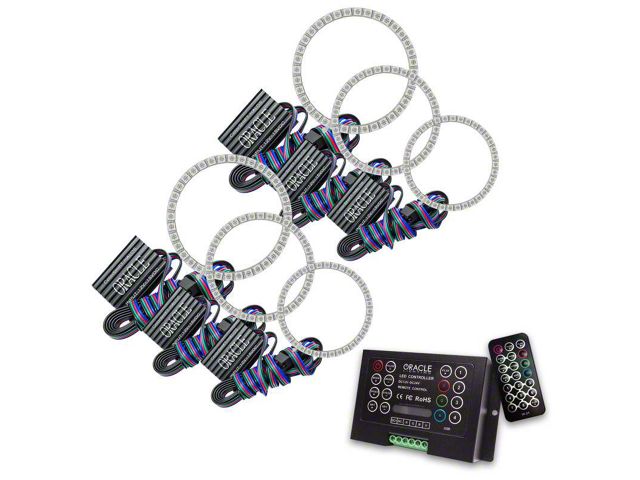 The ColorSHIFT Halo Kit can produce any color including whites from 3000K-15000K with the push of a button. This allows the user to dial-in the exact color rings that they desire. These 3-Chip 5050 SMD rings are BRIGHT, and for some they may be too bright, that is why (for the first time) the user has full control over the ring brightness. ORACLE SMD or "Surface Mount Diode" Halos utilize an advanced type of LED chip that can produce brilliant light output while only consuming a small amount of power. The SMD chips are installed onto a CAD designed 6-layer PCB (Printed Circuit Board) which is very sturdy and will not break if pressured. The PCB can easily be mounted to a headlight housing using the pre-installed 3M adhesive tape backing.