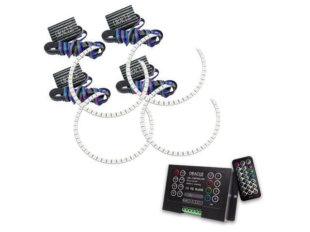 The ColorSHIFT Halo Kit can produce any color including whites from 3000K-15000K with the push of a button. This allows the user to dial-in the exact color rings that they desire. These 3-Chip 5050 SMD rings are BRIGHT, and for some they may be too bright, that is why (for the first time) the user has full control over the ring brightness. ORACLE SMD or "Surface Mount Diode" Halos utilize an advanced type of LED chip that can produce brilliant light output while only consuming a small amount of power. The SMD chips are installed onto a CAD designed 6-layer PCB (Printed Circuit Board) which is very sturdy and will not break if pressured. The PCB can easily be mounted to a headlight housing using the pre-installed 3M adhesive tape backing.