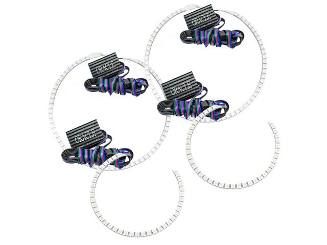 The ColorSHIFT Halo Kit can produce any color including whites from 3000K-15000K with the push of a button. This allows the user to dial-in the exact color rings that they desire. These 3-Chip 5050 SMD rings are BRIGHT, and for some they may be too bright, that is why (for the first time) the user has full control over the ring brightness. ORACLE SMD or "Surface Mount Diode" Halos utilize an advanced type of LED chip that can produce brilliant light output while only consuming a small amount of power. The SMD chips are installed onto a CAD designed 6-layer PCB (Printed Circuit Board) which is very sturdy and will not break if pressured. The PCB can easily be mounted to a headlight housing using the pre-installed 3M adhesive tape backing.