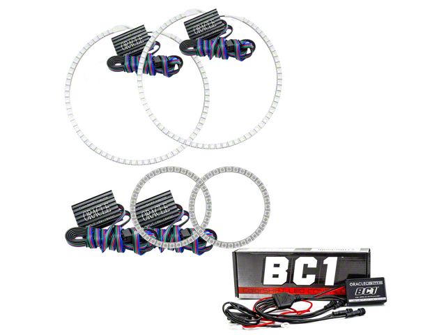 The ColorSHIFT Halo Kit can produce any color including whites from 3000K-15000K with the push of a button. This allows the user to dial-in the exact color rings that they desire. These 3-Chip 5050 SMD rings are BRIGHT, and for some they may be too bright, that is why (for the first time) the user has full control over the ring brightness. ORACLE SMD or "Surface Mount Diode" Halos utilize an advanced type of LED chip that can produce brilliant light output while only consuming a small amount of power. The SMD chips are installed onto a CAD designed 6-layer PCB (Printed Circuit Board) which is very sturdy and will not break if pressured. The PCB can easily be mounted to a headlight housing using the pre-installed 3M adhesive tape backing. The new BC1 ColorSHIFT controller is a robust and rugged Bluetooth option that is easy to install and a low price. Perfect for adding ORACLE ColorSHIFT products to your vehicle, simply connect power and ground then connect your smartphone through the free app to control. The controller features 4 outputs with waterproof connections for easy wiring to your ColorSHIFT lighting products. Through the app you can turn your lights on and off, select from millions of color variations, control patterns, brightness, strobe function, and even control the lights with music