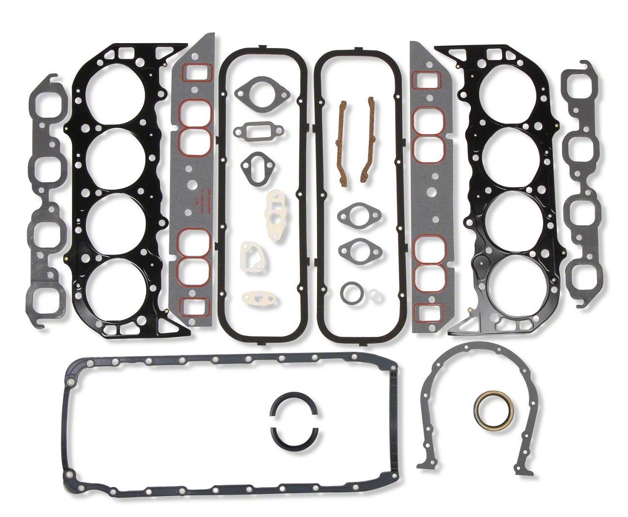 Kits include all gaskets needed for a complete engine overhaul. Cylinder head, intake, exhaust, valve cover and oil pan. Distributor gasket (where applicable), timing cover, fuel pump, thermostat, water pump, and rear main seal. For OE replacement, high performance street, drag race and oval track.
