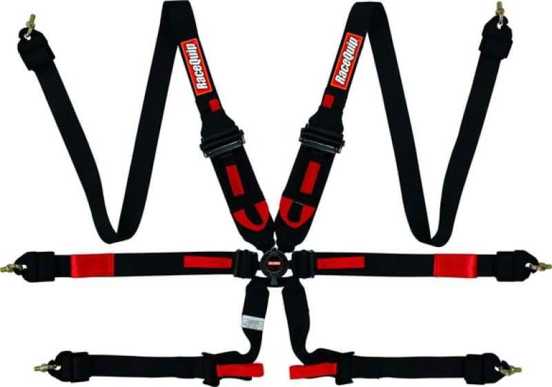 RaceQuip's FIA 8853-2016 auto racing harness sets are designed and built to deliver the "Best Value in Safety", just like the rest of the product line. These FIA Pull-Down Lap Camlock style seat belt sets meet that challenge by offering loads of features at an affordable price. RaceQuip's FIA series Camlock belt sets utilize black oxide coated drop forged steel hardware for great looks and long service life. The six-point configuration incorporates a comfortable dual 2" wide moustache bar crotch strap design that is adjustable to 24" in length. The lap belt is a "pull-down" configuration which means that you pull the lap belt straps down and away from the cam buckle to tighten. The 3" wide lap belt is adjustable from 22" to 60" in length and has sewn ends with snap hooks and eyebolts installed. The individual shoulder belts are 3" wide and can be adjusted from 20" to 68" in length. This harness set meets the stringent FIA 8853-2016 standard which allows racers in some sanctions to use them for five years before replacing. Construction starts with a lightweight magnesium alloy dual direction cam buckle. The buckle features an engagement cone which allows the belts to snap into the cam mechanism at angles of 21 Degrees left or right and 11 degrees up and down for ease of engagement.