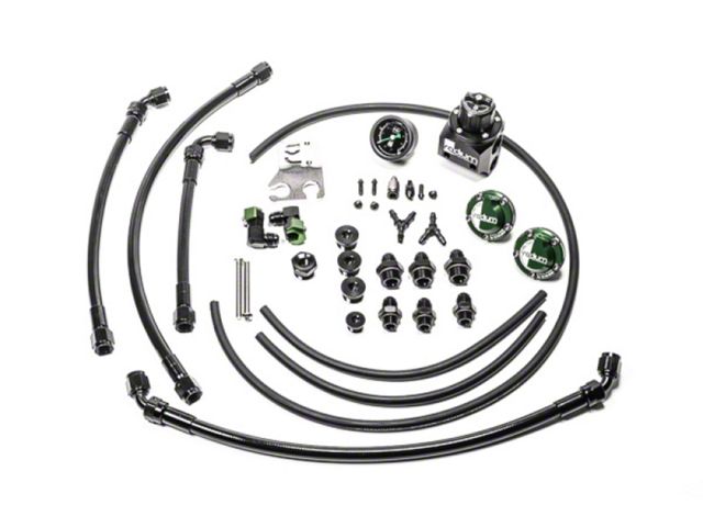 Fittings, hoses, adjustable regulator and all necessary hardware to connect Radium VR38DETT fuel rails to the factory fuel feed and return lines on the R35.
