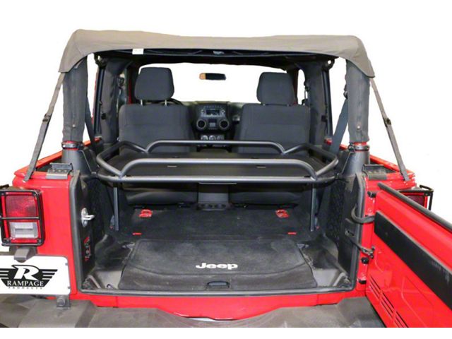Rear sport rack is a lightweight durable steel tubular interior storage rack with bottom base panel. Fits both soft and hardtop applications. Safety lock catch in lowered position - hides secure lower compartment for concealed storage. Safety tie down openings across the base panel that is retractable when not in use. High pressure gas shocks pull and hold tray in upright (out of the way) position. Textured dual stage powder coat finish and a no drill installation. Securely fastens to factory attachment points.