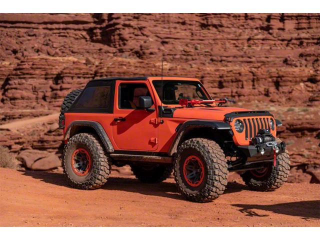 The Rampage Frameless Trail Top installs over the original equipment factory roll bar for a snug fit. This unique design allows for larger side windows and improved visibility with removable side and rear windows that quickly convert the soft top into an open Safari top. Windows use heavy duty molded tooth zippers and are easily replaced or removed. The windows are also stored in a special separation panel between the ceiling and roof top which is concealed to protect the windows from scratches or puncture. The fastback style offers improved aerodynamics and a quieter ride than factory bow style tops. The windshield channel, door surrounds and tail gate bar are required. These can be purchased separately.