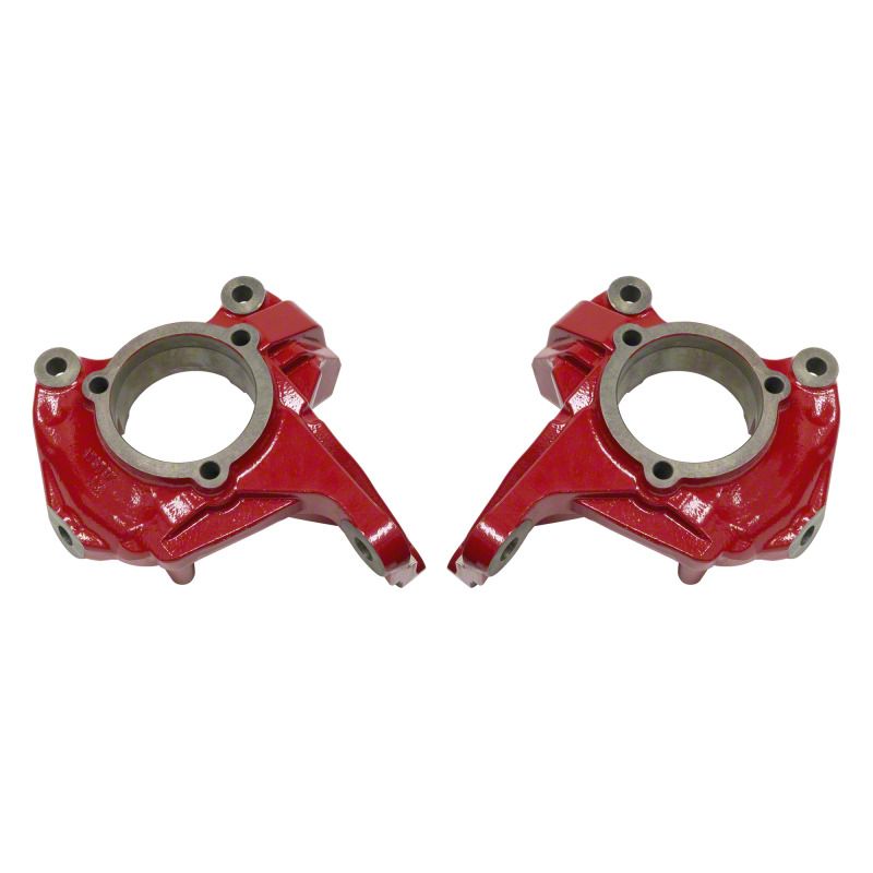 Rancho high-clearance steering knuckles add 1.5-in. of clearance to lifted Jeep Wrangler JK models to protect steering components and lift the steering linkage away from off-road obstacles. The kit includes two knuckles and 3-in. bump stops.