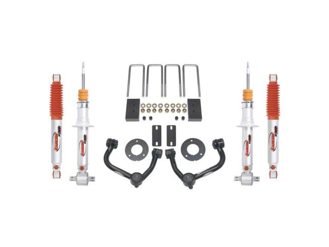 Give your Ford F-150 an aggressive stance with the Rancho 3-in. suspension system. This premium suspension system features upper control arms with preinstalled ball joints and Rancho RS9000XL shocks and struts that allow customized damping control.