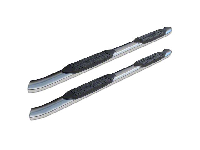 Introducing Raptor Series 5in OE Oval Nerf Bars Stainless Steel! Raptor Series bars are carefully shipped completely assembled and with all hardware. With everything all together in one box ready to go, installation is a breeze! These bars also feature the new full 5in raised saddle style step pad with the Raptor Series logo in the middle and a 30 degree curve at both ends. These stainless steel step tubes shine like chrome due to a revolutionary 5 step polishing system that ensures a long lasting shine. These bars also come with highly polished, welded end caps to complete the look. The Raptor Series bars are rated to hold over 500lbs a piece and come standard with an industry leading Limited Lifetime Warranty.