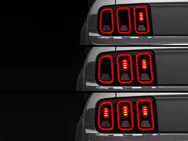These Raxiom Gen5 Tail Lights feature built-in sequentials, modern LED technology and aggressively smoked lenses to transform the appearance of your 2005-2009 Mustang. When activated the turn signals or hazard lights will sequence from the center light out and repeat until switched off. When the brakes are applied, the tail lights will sequence once and then stay lit during braking. Raxiom Gen5 LED Tail Lights are assembled from state of the art electronic components with a simple plug-in connector that easily inserts into the stock wiring harness for a straight forward installation. Replace those weak factory bulbs with numerous high intensity LED's that illuminate quicker and brighter than standard incandescent bulbs with a set of Raxiom Gen5 LED Tail Lights to improve your driving safety. Raxiom Gen5 LED Tail Lights not only improve the appearance of your Mustang, but they also meet or exceed the strict guidelines set forth by the U.S. Department of transportation (DOT) making them DOT compliant under compliance# QR1200176. This is a product designed for Mustangs sold in the US. It will not function properly on Mustangs sold in the EU or UK without modifications being made to the wiring harness. Also, these Tail Light are not compatible with Tail Light Trim.
