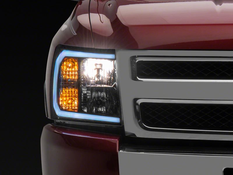 Improve the appearance and nighttime driving visibility of your 2007-2013 Chevrolet Silverado 1500 just by replacing your old weathered, worn out, and yellowing factory headlights with a brand new pair of Axial Headlights that feature black housings and clear lenses. With an impressive LED Daytime Running Light (DRL) design, these Headlights will give your Silverado 1500 a whole new look. Manufactured from OEM grade materials, these Headlights are assembled to precise standards for long-lasting quality. These Headlights feature durable, black ABS plastic housings with multi-faceted chromed reflectors, clear polycarbonate lenses, and modern LED lighting. Each housing is weather-sealed to prevent dirt and moisture from harming the state of the art electronics found inside. These Headlights were designed to be a direct plug and play replacement for your vehicle's original factory housings. The DRL light bar portion of the headlight will require splicing into your running lights for operation. Please be sure to have your headlights properly aimed/aligned before driving at night.