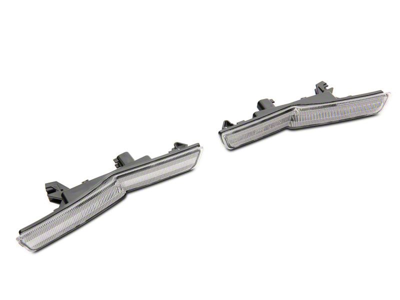 A set of Axial Clear LED Side Marker Lights is a simple and effective way to upgrade the exterior styling of your 2018-2023 widebody Dodge Challenger. These Side Marker Lights feature a razor sharp LED strip that replaces the unsightly hot spot of the factory lights. These Axial Side Marker Lights not only look great, but they are also much brighter than the weak factory incandescent lights for increased visibility day or night. Raxiom manufactures its Side Marker Lights with injected molded ABS plastic housings for durability, and use clear polycarbonate lenses for exotic good looks. These Side Marker employee high output, red (rear) and amber (front) SMD LED strip lighting for super bright illumination. Raxiom ensures that its Side Marker Light housings are weather sealed to prevent dirt and moisture from harming the state of the art electronics found inside. Raxiom designed its LED Side Marker Lights to be a direct plug and play upgrade for your Challenger's original factory lights. There is absolutely no cutting, splicing or resistors required. Just pop out the old factory side markers and disconnect the wiring harness. Plug the harness into the back of your new LED Side Markers and snap them in place of the old ones. It's that simple!