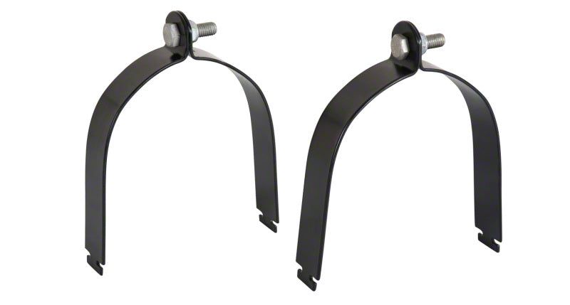 Made from galvanized steel, these 100mm (4") pipe clamps are sold as a pair. They fit into the top channel of a Rhino-Rack Vortex bar, and are secured in place with an M8 bolt and nyloc nut.