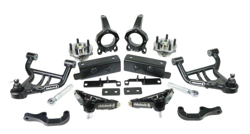 Brand Description: Ridetech manufactures exciting suspension systems that improve the handling and ride quality of your muscle car, truck, Corvette, or hot rod. From restorations and show cars to high-speed autocross and track day cars, Ridetech offers a wide range of premium products, including air suspension systems (air ride), coil-overs, shock absorbers, coil and leaf springs, tubular control arms, roll bars, and sway bars