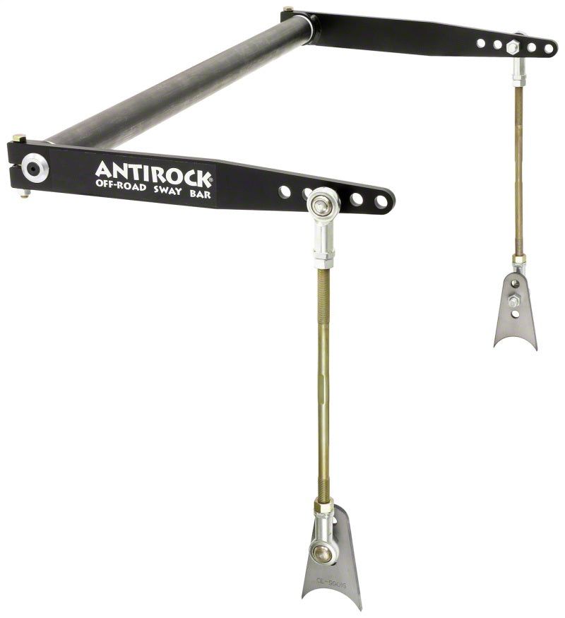 RockJocks Antirock(R) sway bar kits are available in a universal fit configuration for those building their own custom rigs and rock buggies. This universal kit features a 39 1/2 in. torsion bar length and 17 in. long fabricated steel arms. Vertical links use a 14 in. long 1/2 in. x .20 RH/LH threaded rod that can be cut down to your desired length, and the necessary 1/2 in. x 20 thread heim joint rod ends, jam nuts, and tabs to weld to your axle tube are supplied. Also supplied is the universal weld-in 1.75 in. x .095 wall DOM tube that is cut to the proper length to work with the torsion bar length, and the delrin bushings to support the bar in the tube. The 39 1/2 in. bar is a 1 in. diameter. These kits require fabricating for installation -- these are NOT bolt-on kits.