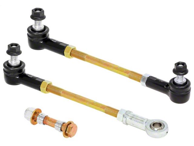 RockJock's Adjustable Sway Bar End Link Set for the front of Jeep JL Wranglers and JT Gladiators features 8 1/2 in. long link rods with 2 5/8 in. of 1/2 in.-20 LH thread and 2 5/8 in. of 1/2 in.-20 RH thread, providing adjustment as-is and extra thread, allowing you to cut them shorter as deemed necessary by your application. Link sets are included in our Antirock Sway Bar Kits, but are able to be used universally in many applications to replace non-adjustable sway bar links. Additionally, if you have changed the lift amount on your vehicle you may need a different length of sway bar links to accommodate your new lift. You can simply buy a complete new link set to accommodate your needs. To accommodate the JL and JT application, this kit includes 3 high-end sealed rod ends that feature 12mm-1.75 RH thread studs and locking nuts and one thru-bolt heim joint, high-misalignment spacers and hardware for use at the passenger's side of axle housing location. Jam nuts are included. These links and sealed rod ends are a direct replacement for link sets that feature heim joints.
