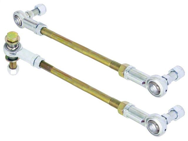 RockJock's Adjustable Sway Bar End Link Set for the front of Jeep JL Wranglers and JT Gladiators features 8 1/2 in. long link rods with 2 5/8 in. of 1/2 in.-20 LH thread and 2 5/8 in. of 1/2 in.-20 RH thread, providing adjustment as-is and extra thread, allowing you to cut them shorter as deemed necessary by your application. Link sets are included in our Antirock Sway Bar Kits, but are able to be used universally in many applications to replace non-adjustable sway bar links. Additionally, if you have changed the lift amount on your vehicle you may need a different length of sway bar links to accommodate your new lift. You can simply buy a complete new link set to accommodate your needs. To accommodate the JL and JT application, this kit includes 3 heim joints that feature 1/2 in.-20 RH thread studs and one thru-bolt heim joint, high-misalignment spacers and hardware for use at the passenger's side of axle housing location. Nyloc nuts and jam nuts are included.