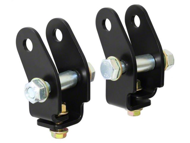 RockJock's Jeep JT Gladiator Mojave Front Shock Relocator Brackets are designed for use with our 1 1/2 in. JT Mojave Spacer Lift Kit. These brackets allow you to retain your Mojave's factory installed Fox shocks when installing the 1 1/2 in. lift. Simply unbolt your shocks install these relocator brackets into the factory shock mounts on the axle housing and then reinstall your shocks into the relocator brackets! Brackets are finished in semi-gloss black powder coat and include all necessary hardware.