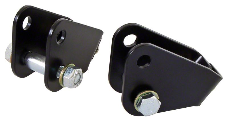 RockJock's Jeep JT Gladiator Mojave Rear Shock Relocator Brackets are designed for use with our 1 1/2 in. JT Mojave Spacer Lift Kit. These brackets allow you to retain your Mojave's factory installed Fox shocks when installing the 1 1/2 in. lift. Simply unbolt your shocks install these relocator brackets into the factory shock mounts on the axle housing and then reinstall your shocks into the relocator brackets! Brackets are finished in semi-gloss black powder coat and include all necessary hardware.