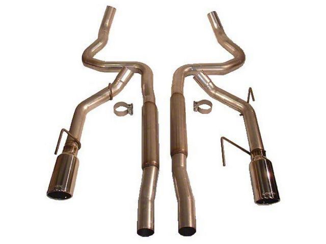The Ford Mustang Exhaust Extreme Performance Kit gives your Mustang that rumble sound letting others know you mean business while increasing the horsepower and torque of your vehicle. The increased power is generated due to the higher flow system as compared to a conventional exhaust system. Though this particular exhaust for the Ford Mustang creates more sound outside your car, it doesn't create the typical off-road exhaust drone inside. The exhaust system is manufactured using a CNC bender to create smooth mandrel bends. This process maintains a consistent inside diameter through the bended area and allows for a significant increase in flow over stock/serrated-bent pipes. This Ford Mustang exhaust kit is made from high-quality 2.5-inch diameter stainless steel tubing and has 4-inch diameter tips made from polished 304 stainless steel and embossed with the "ROUSH" logo. Fits 2005 - 2009 Mustang GTs and GT500s with factory rear fascia.