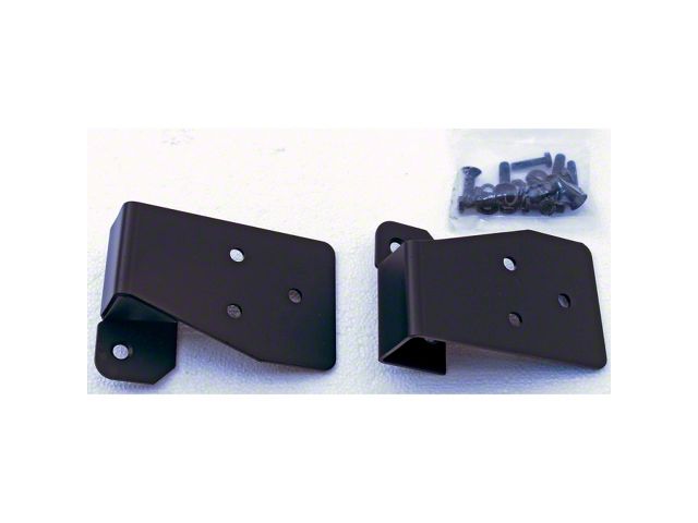 Allows for use of factory mirrors when the doors are removed. Each set of brackets attach to the vehicle's windshield hinges using existing bolt holes. No drilling required for installation. Sold in pairs with all mounting hardware.