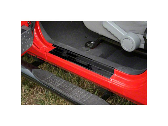 Protect your door threshold with These stylish entry guards. Available in three different finishes, black, polished stainless and aluminum to enhance the look of your Jeep while providing the ultimate in protection. 2007-2013 Wrangler entry guards available for 2 and 4-Door models (2-door kits will fit front 4-door applications) 07-13 Wrangler models attach without screws using durable double sided automotive grade adhesive.