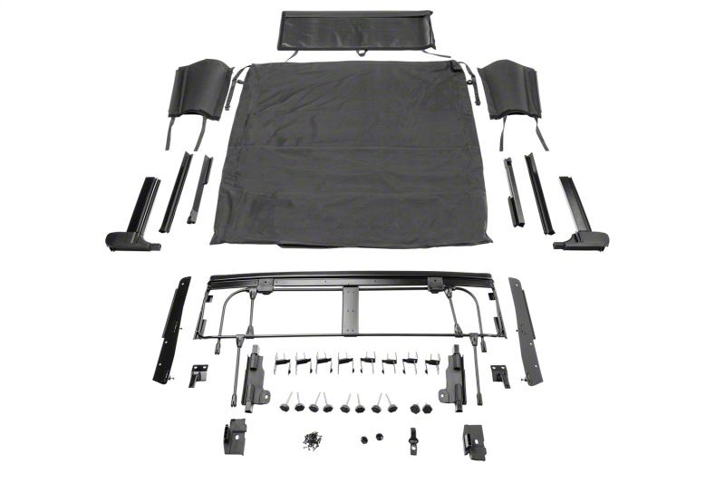 The Rugged Ridge Voyager Soft Top is easily the most stylish and versatile soft top available for Jeep Wrangler JL models. Designed with sleek, fastback styling and packed with all the features you could want in a replacement top. The Voyager's frameless design installs snugly over the factory sport bar for a contoured fit and low profile, with no bulky bows or unsightly bulges. Larger tinted side windows offer greater visibility and are easily removed by means of heavy duty self-correcting zippers. Once removed, the windows store conveniently inside the built-in overhead panel, keeping them safe from damage and ready to install at a moment's notice. Best of all, the Voyager top's fold-back feature affords you open-top enjoyment in just seconds. Constructed of 30 oz. premium sail cloth fabric with sealed seams, the Voyager Soft Top is built to last and backed by an industry-leading 5-year warranty.