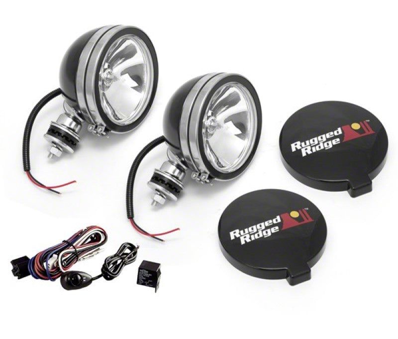 Designed, engineered, and tested to stand up to the rigors of off road use, our lights are constructed with heavy-duty stamped steel housings, and crystal glass lenses set in shock absorbent weatherproof rubber gaskets. The brilliant 12V 100 watt halogen bulbs slice through fog, rain or snow to help illuminate the road even under the toughest conditions. Available in Round, Rectangular and Slim housings in either a black or stainless steel finish to best suit your application. Slim lights feature a narrow profile just 2 13/16 inch thick! This sleek design allows them to be mounted in places most lights won't fit. They are perfect for windshield and grille mount light systems. The lights are available individually or in kits containing a pre-terminated wiring harness, relay, impact resistant stone guards (white stone guards with stainless, black with black) and illuminated dash switch.