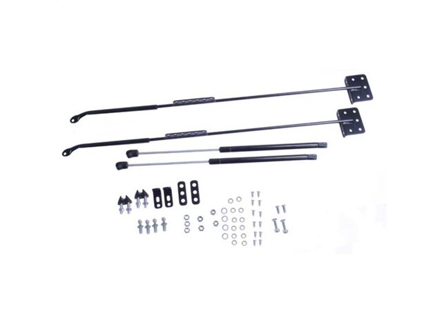 Eliminate the factory prop rod with a pair of gas charged hood lifts. This kit includes all the brackets and gas shocks needed to clean up the under hood appearance of your rig. This kit is also functional as the hood prop rod will no longer be in the way while working underneath the hood of your CJ or Wrangler. Easy installation. Two part numbers cover 72-09 CJ and Wrangler.