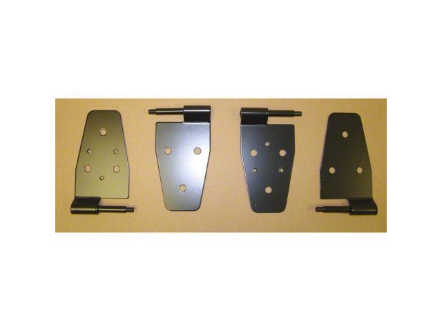 This four piece door hinge kit from Rugged Ridge offers a direct fit and comes in a semi-gloss black powder-coat finish to protect your investment against the elements. Includes complete hardware for installation.