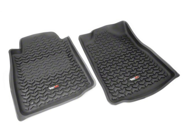 Rugged Ridge Floor liners provide complete protection for the cabin floor of your vehicle while keeping it looking factory fresh. Each liner is perfectly contoured to your vehicles floor for precise secure fitment (floor hook attachment where applicable). The raised lip captures all spills, water and debris keeping your interior pristine. The Chevron-shape patented Deep Tread Technology channels liquid away from your shoes keeping them dry. Made of a durable OE-quality Thermoplastic material that can withstand the rigor of daily abuse. Backed by our Limited Lifetime Warranty. Patent 8,163,369, D627,285, 2,699,641