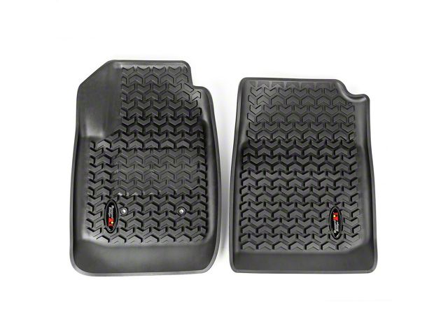 Need an affordable solution to keep the floors of your vehicle looking factory fresh? Rugged Ridge has you covered with this front set of black floor liners. Featuring a durable OE-quality thermoplastic material that can withstand the rigor of daily abuse, each liner is perfectly contoured to your vehicle's floor for precise secure fitment (floor hook attachment where applicable). The raised lip captures all spills, water and debris keeping your interior pristine. Features a chevron shape patented deep tread technology.